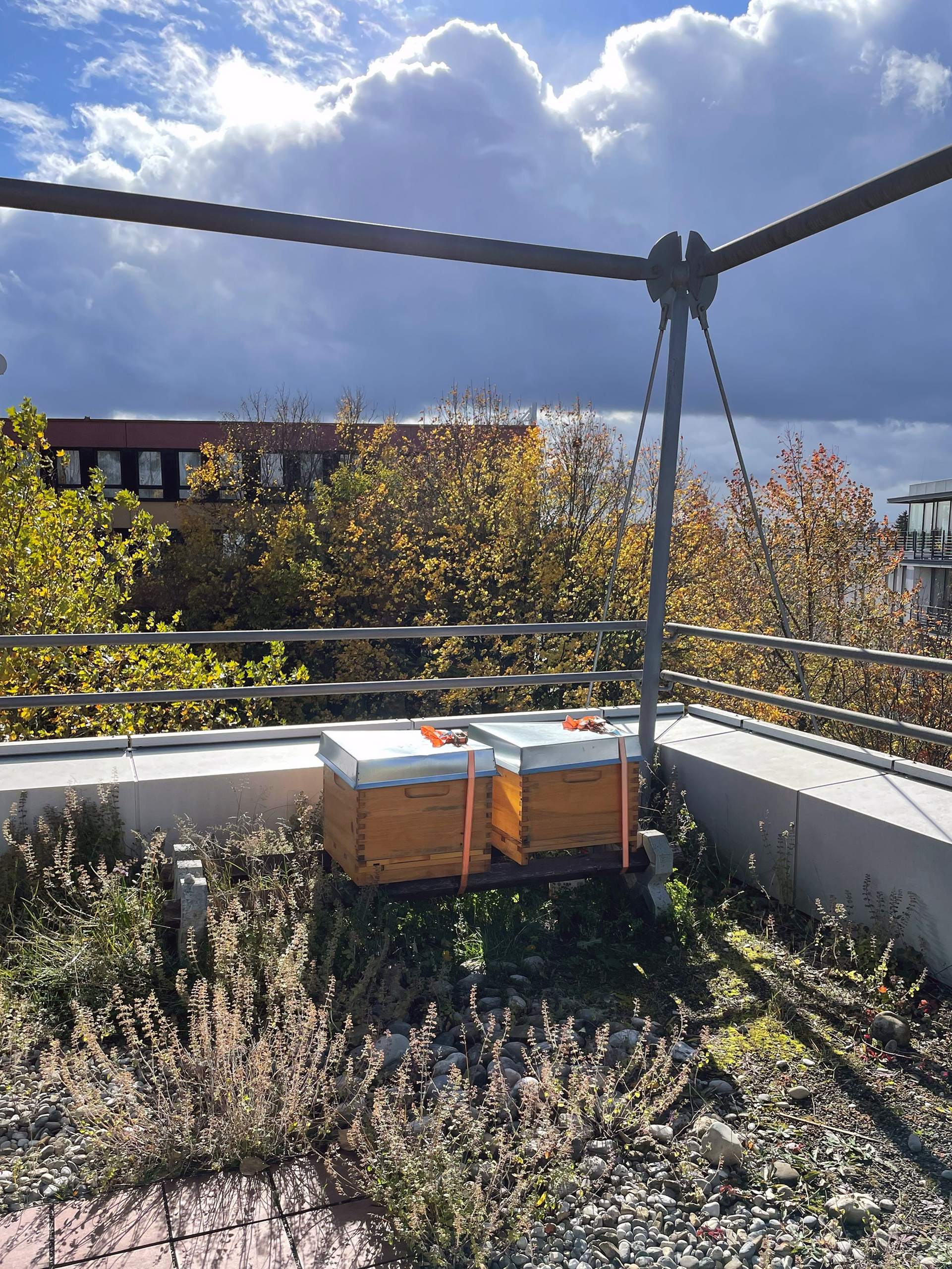 Our 300 square meter rooftop terrace is hosting 2 beehives since early 2023.